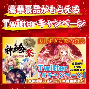 神絵祭-夢- Twitter#(ハッシュタグ)キャンペーン初開催!!! 名古屋の陣・四国の陣・博多の陣に行く人も行けない人も参加できちゃうTwitterキャンペーンを開催です! 「#神絵祭いきたい」or「#神絵祭きた」でツイートしていただたいた方の中から抽選で8名様に、 【神絵師直筆サイン入り缶バッジ】をプレゼント!! ☆アカウントフ...