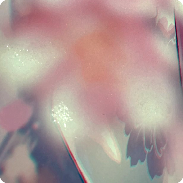 本作はイラスト手前のぼかした梅の花のハイライト部分に少し強めにラメをいれ、